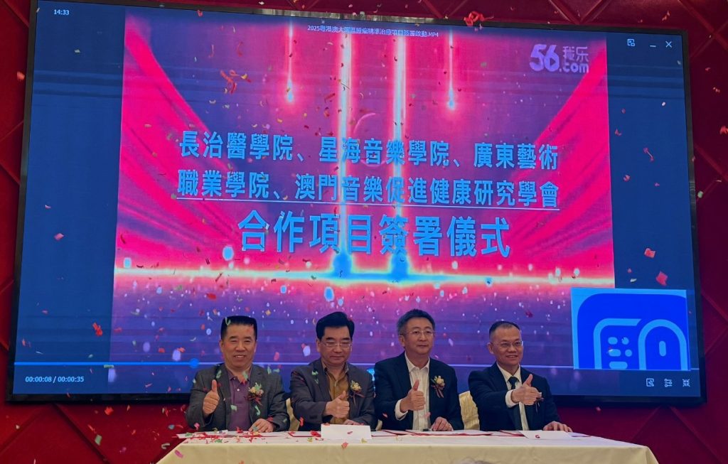 根據協議,合作各方將充分發揮各自優勢,構建協同創新體系。其中,長治醫學院將貢獻數智中醫領域的先進研究成果,星海音樂學院提供音樂治療學科的學術資源與專業支持,廣東藝術職業學院融入藝術理論與技術應用專長,澳門音樂促進健康研究學會則依托其在「五音療愈」領域的深厚積累、臨床實踐經驗及澳門的區位優勢,共同推進技術研發與標準建設。項目旨在研發五音療愈人工智慧創新設備,建立相關技術規範體系,推動科研成果轉化,為癌症術後患者提供安全、有效的創新康復解決方案,助力腫瘤精準治療從「治療」向「全周期康復」延伸。