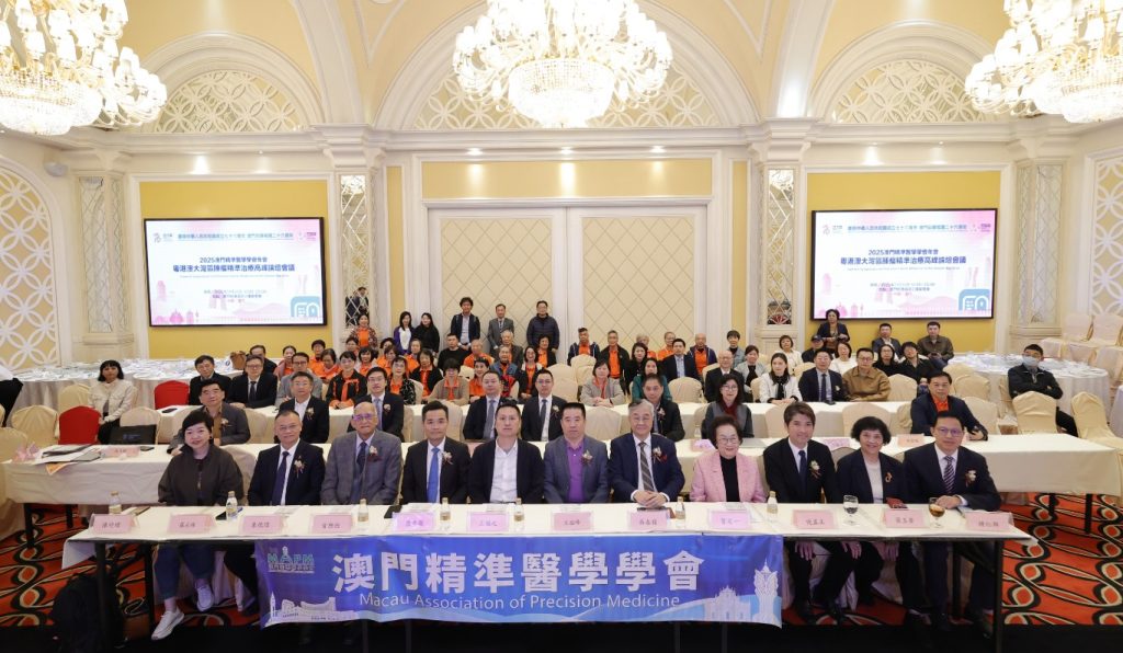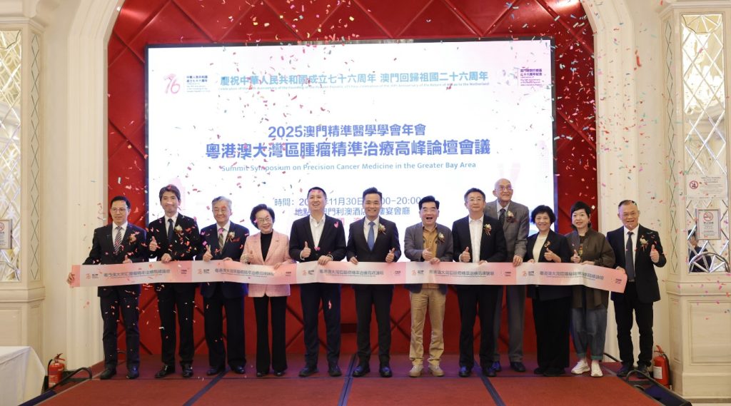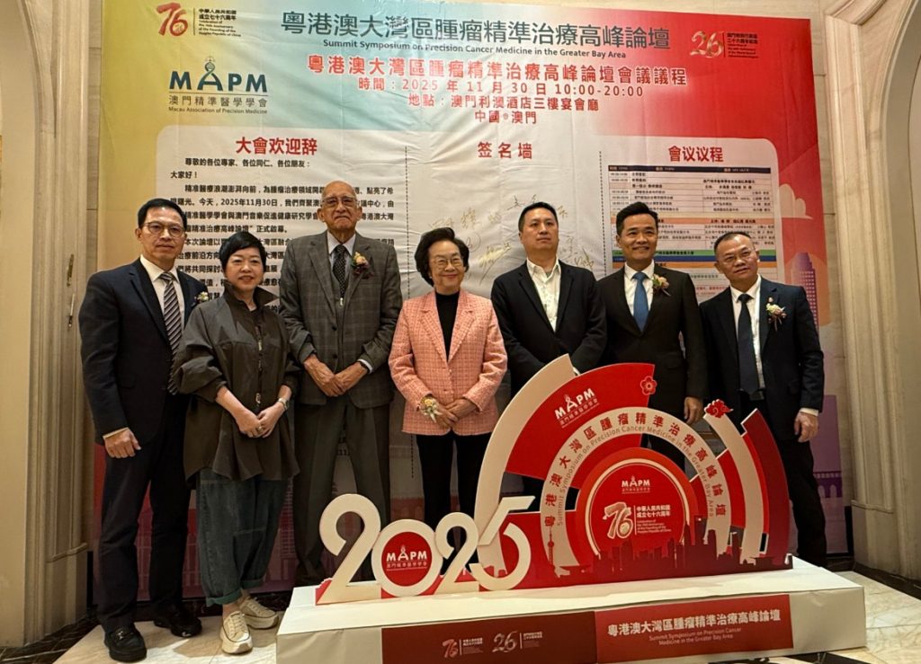 2025 年 11 月 30 日,粵港澳大灣區腫瘤精準治療高峰論壇在澳門利澳酒店會議中心隆重舉行。本次論壇由澳門精準醫學學會與澳門音樂促進健康研究學會共同主辦,以「精準診療・跨界融合・共護健康」為主題,聚焦腫瘤治療與康復領域的前沿進展,致力於構建粵港澳大灣區高水平的跨學科交流平台。